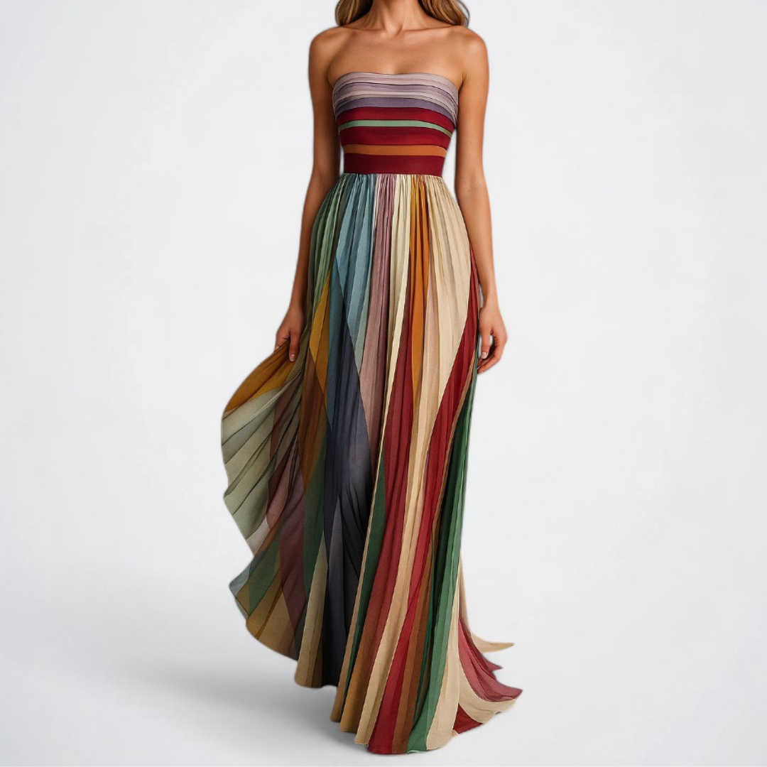 Tess – Strapless Multicolor Pleated Maxi Dress for Women