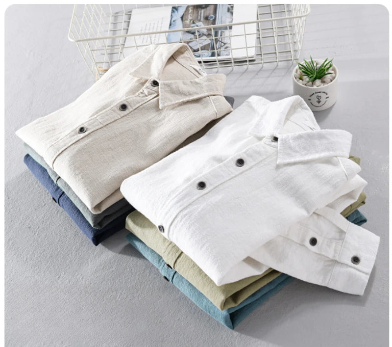 Introducing the Kairos Long Sleeve Shirt – your new go-to for effortless style, breathable comfort, and natural elegance. Crafted from a premium blend of 70% ramie and 30% cotton, this shirt offers the ultimate fusion of durability, softness, and lightweight airflow – ideal for year-round wear.