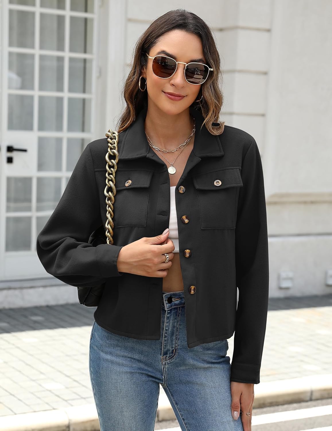 Button-Up Closure – Wear it open or closed for versatile looks.