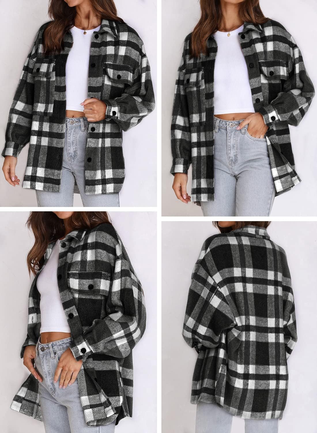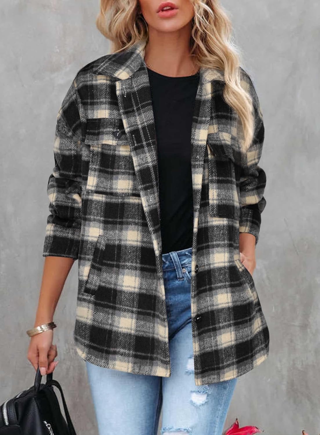 Izzie – Oversized Plaid Button-Up Shacket for Women