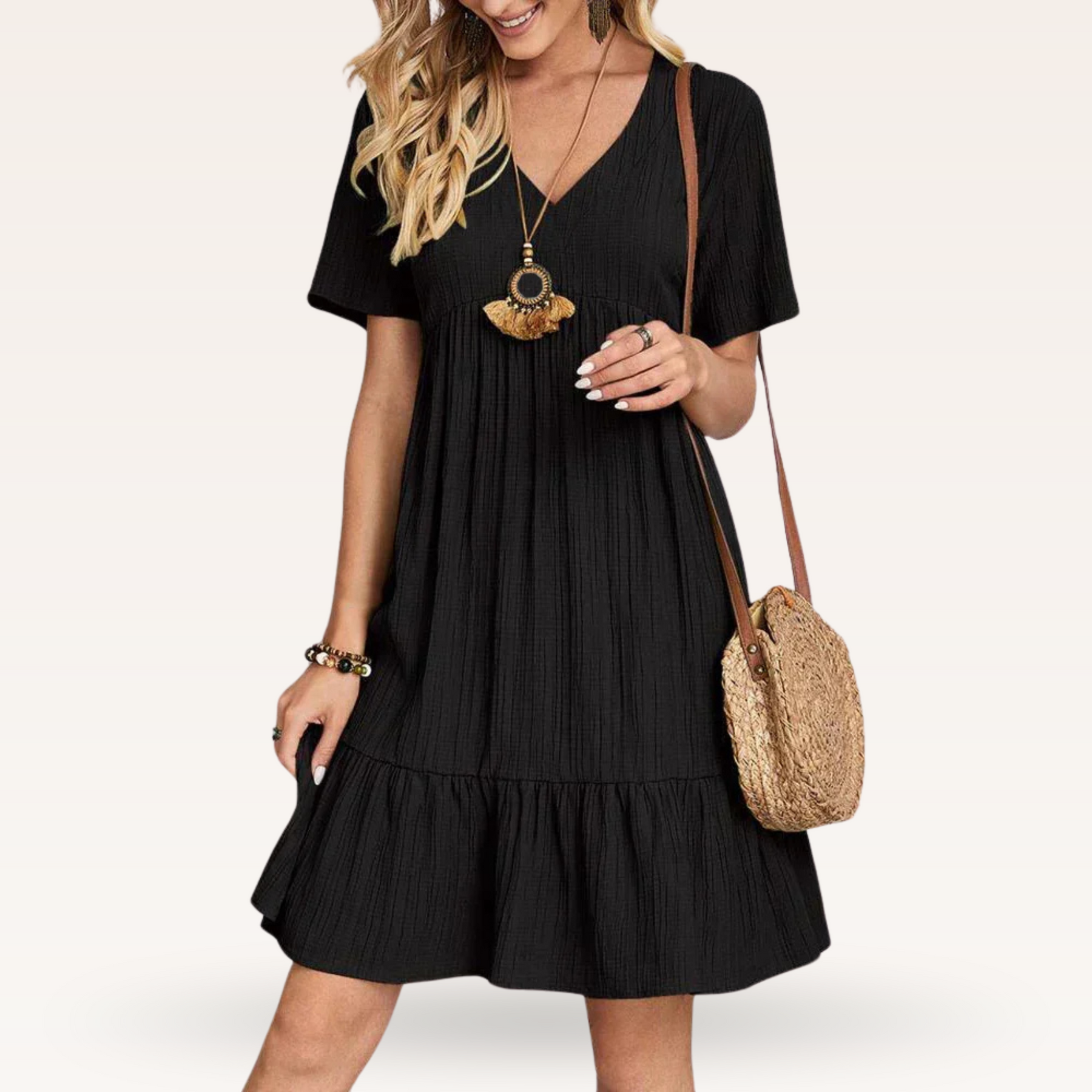 The perfect summer dress exists — and this is it. This short, flowy model with playful ruffles highlights your legs and adds just the right amount of flair for that relaxed bohemian vibe.