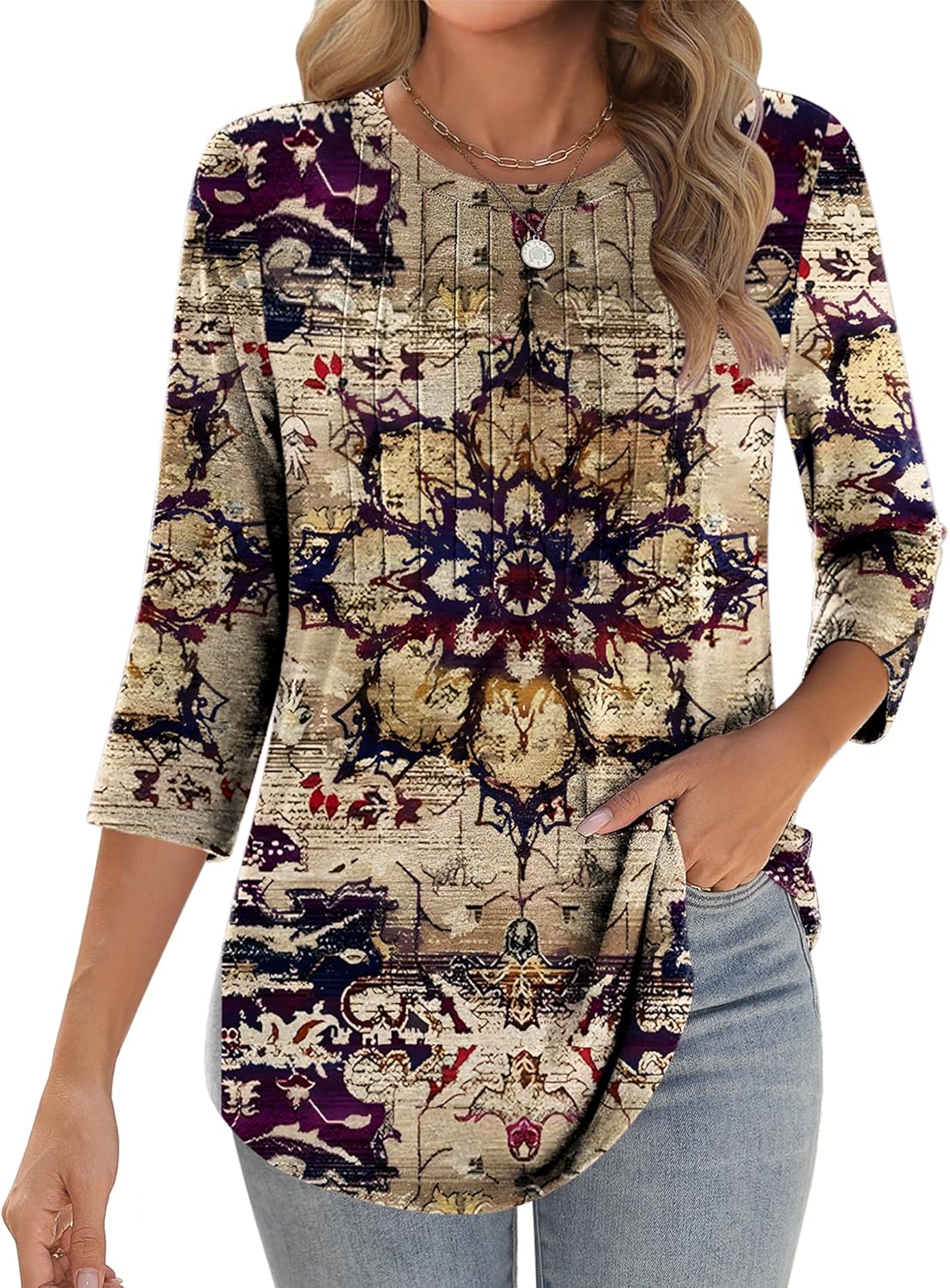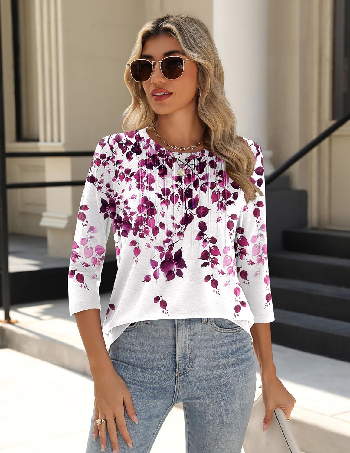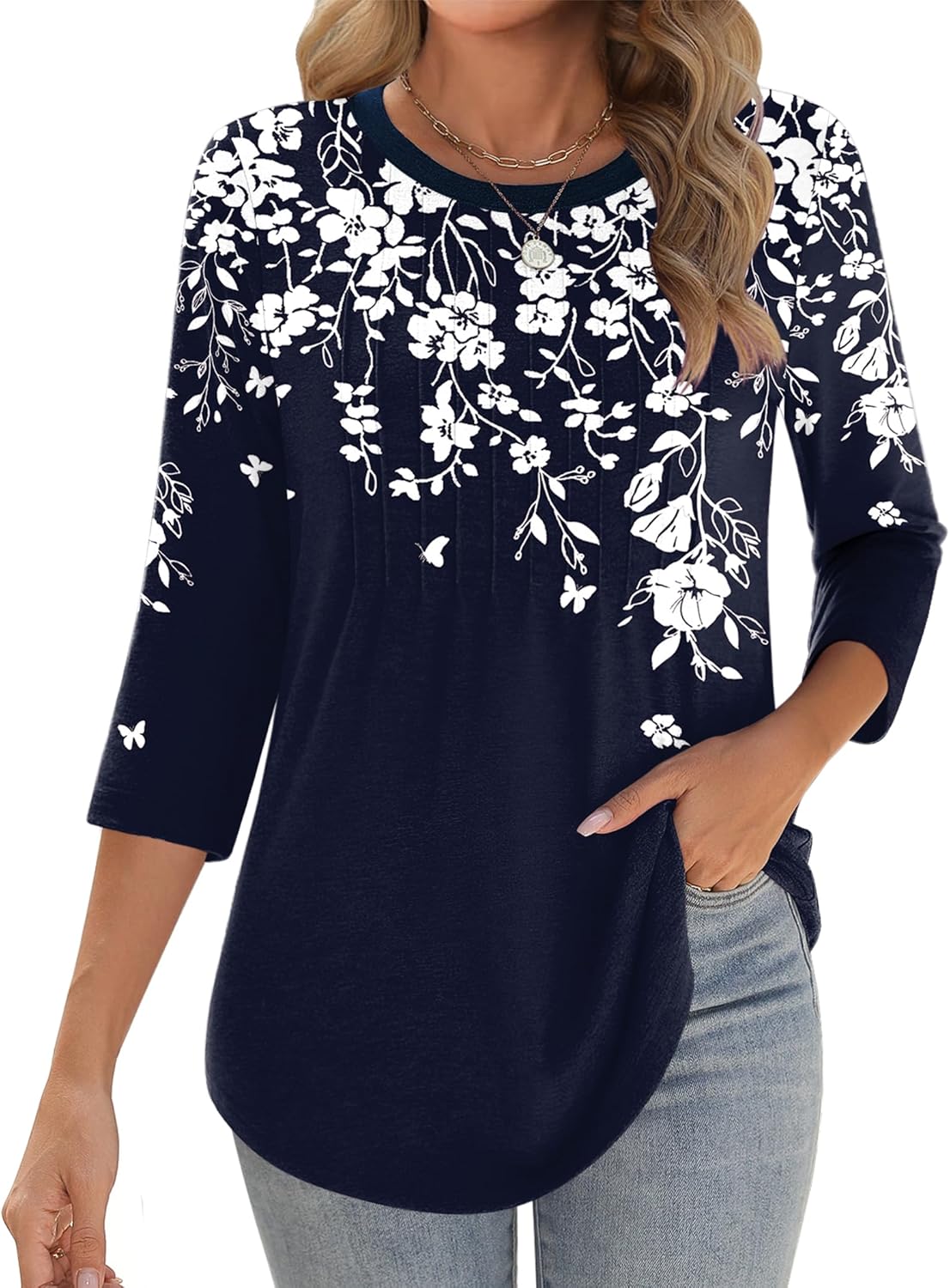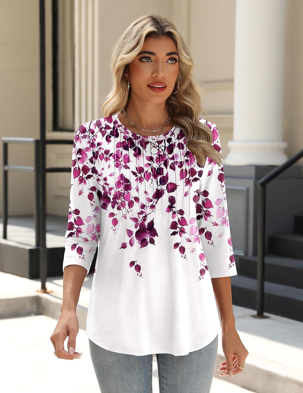Step into style and confidence with the Princess 3/4 Sleeve Floral Pleated Tunic Top—a must-have piece that brings feminine elegance to your everyday look.