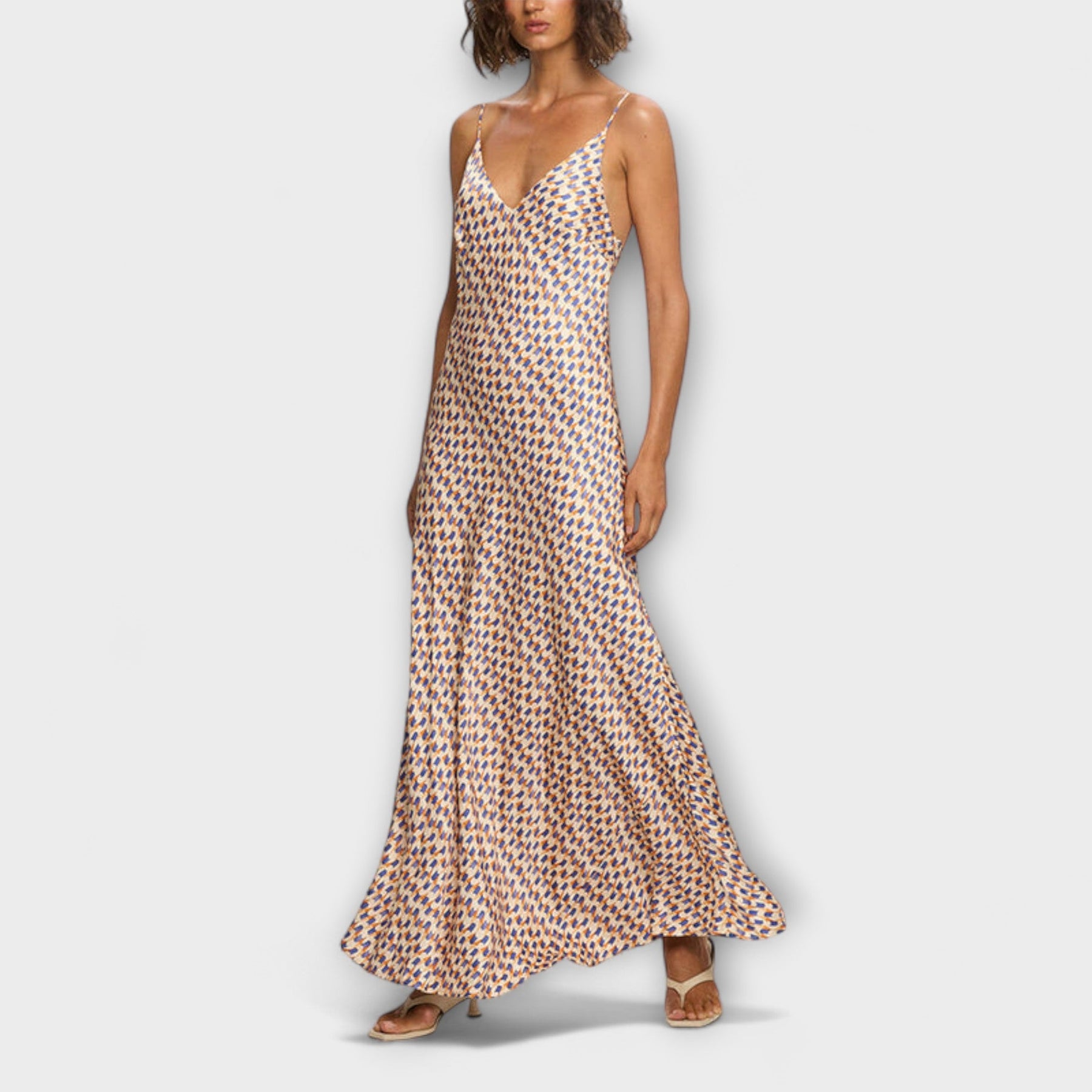 Make a statement with effortless elegance in our stunning strap maxi dress. Featuring a chic geometric print, this dress combines modern craftsmanship with timeless elegance.